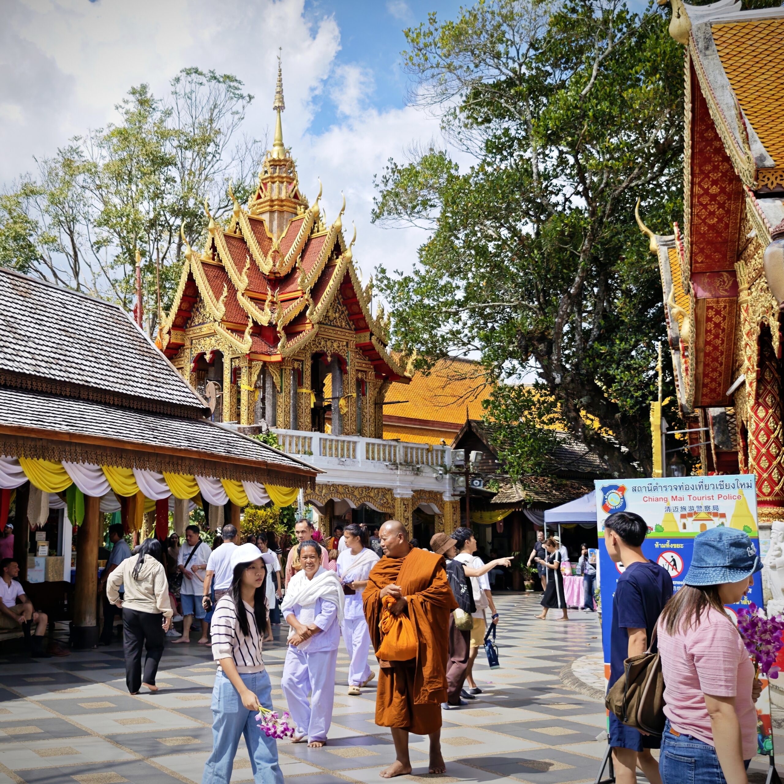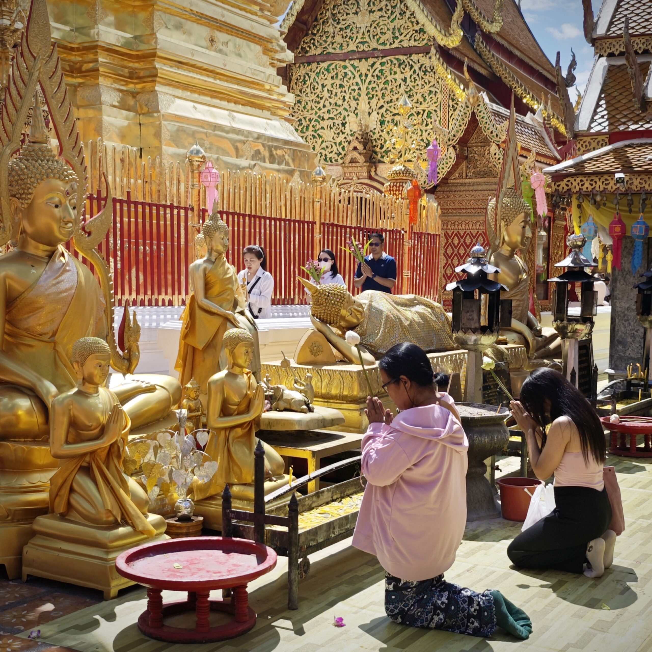 旧市街地にあるワット・プラシンでも、お祈りしながら廻ってる姿が見られますが、ドーイステープはとくにその雰囲気があるのでお勧めですよ。