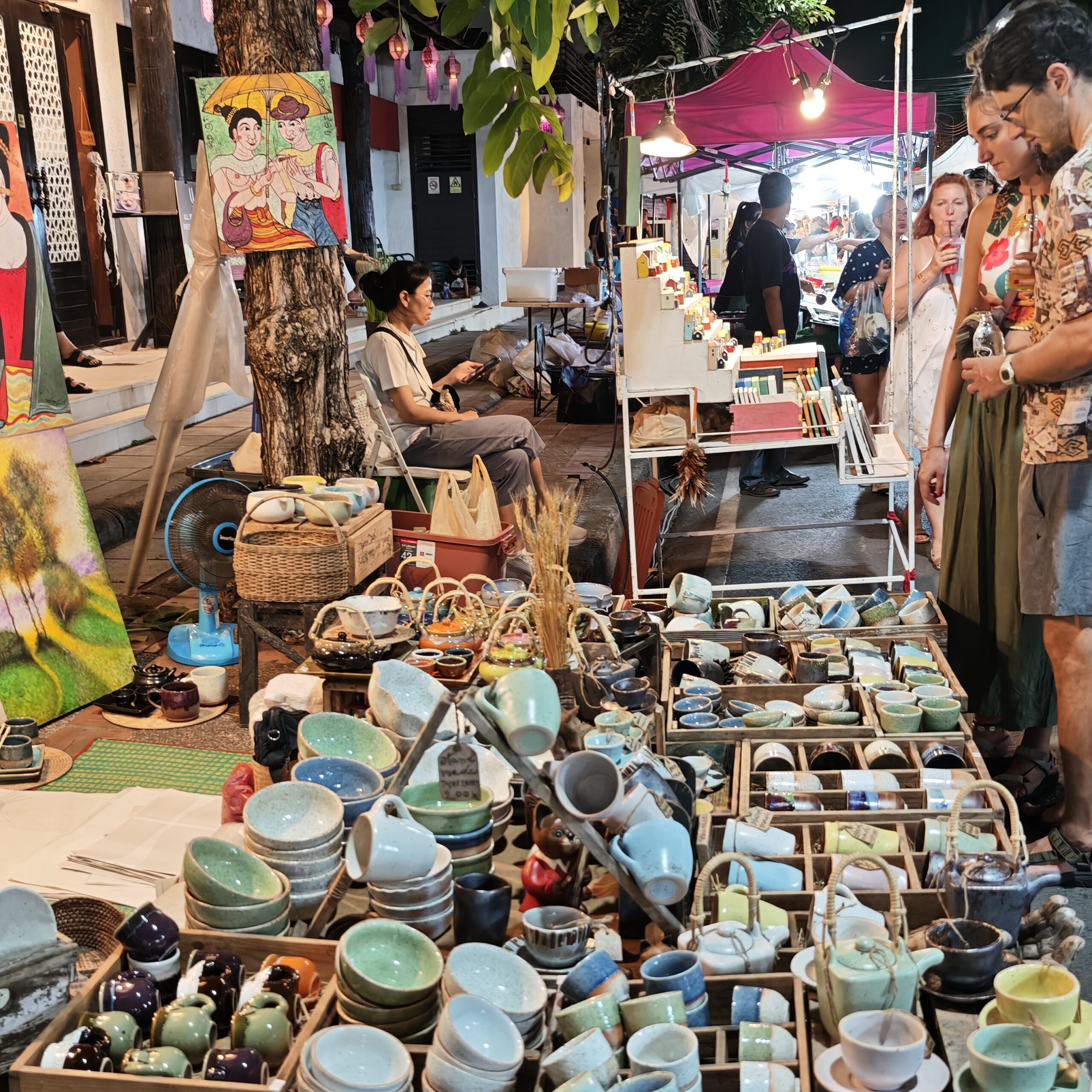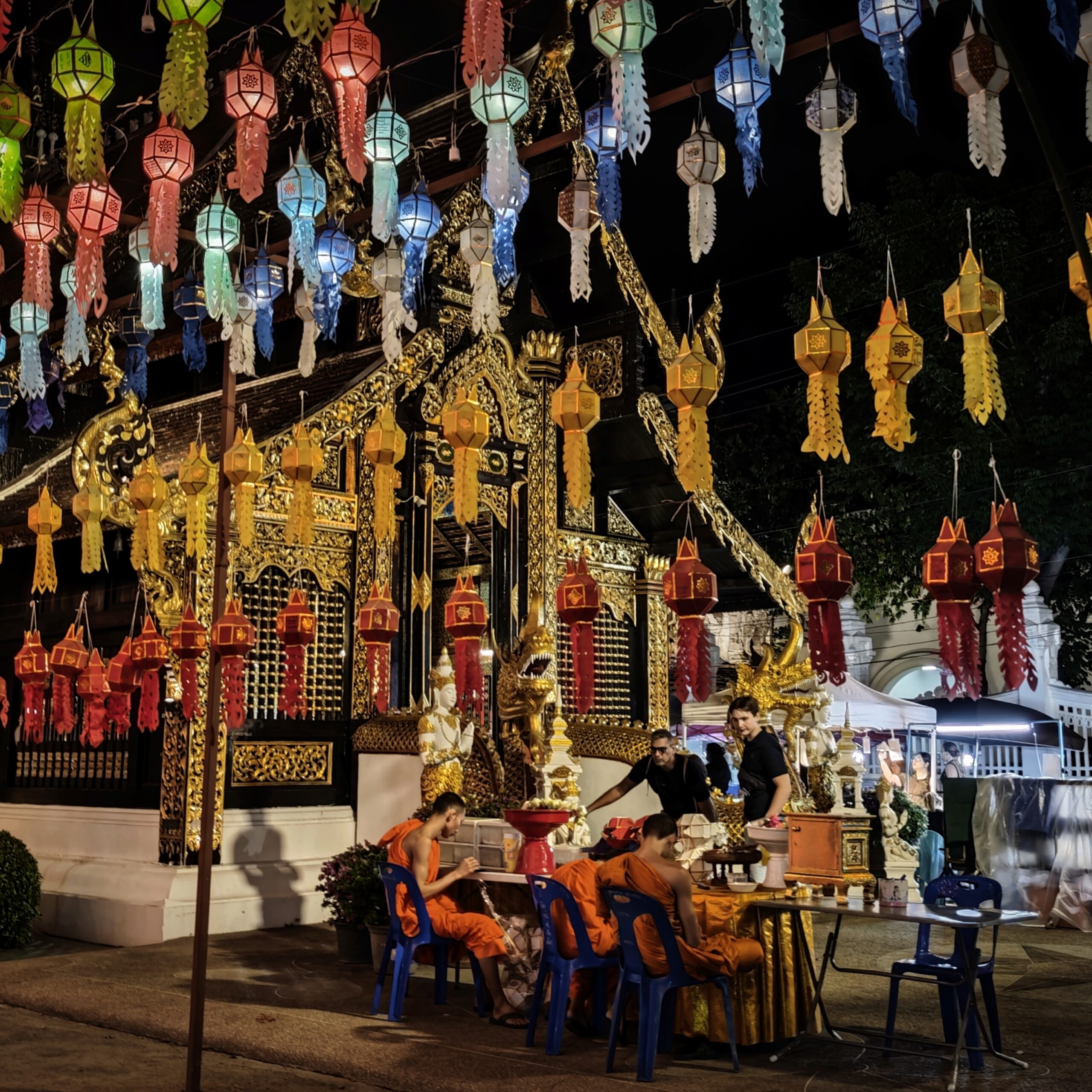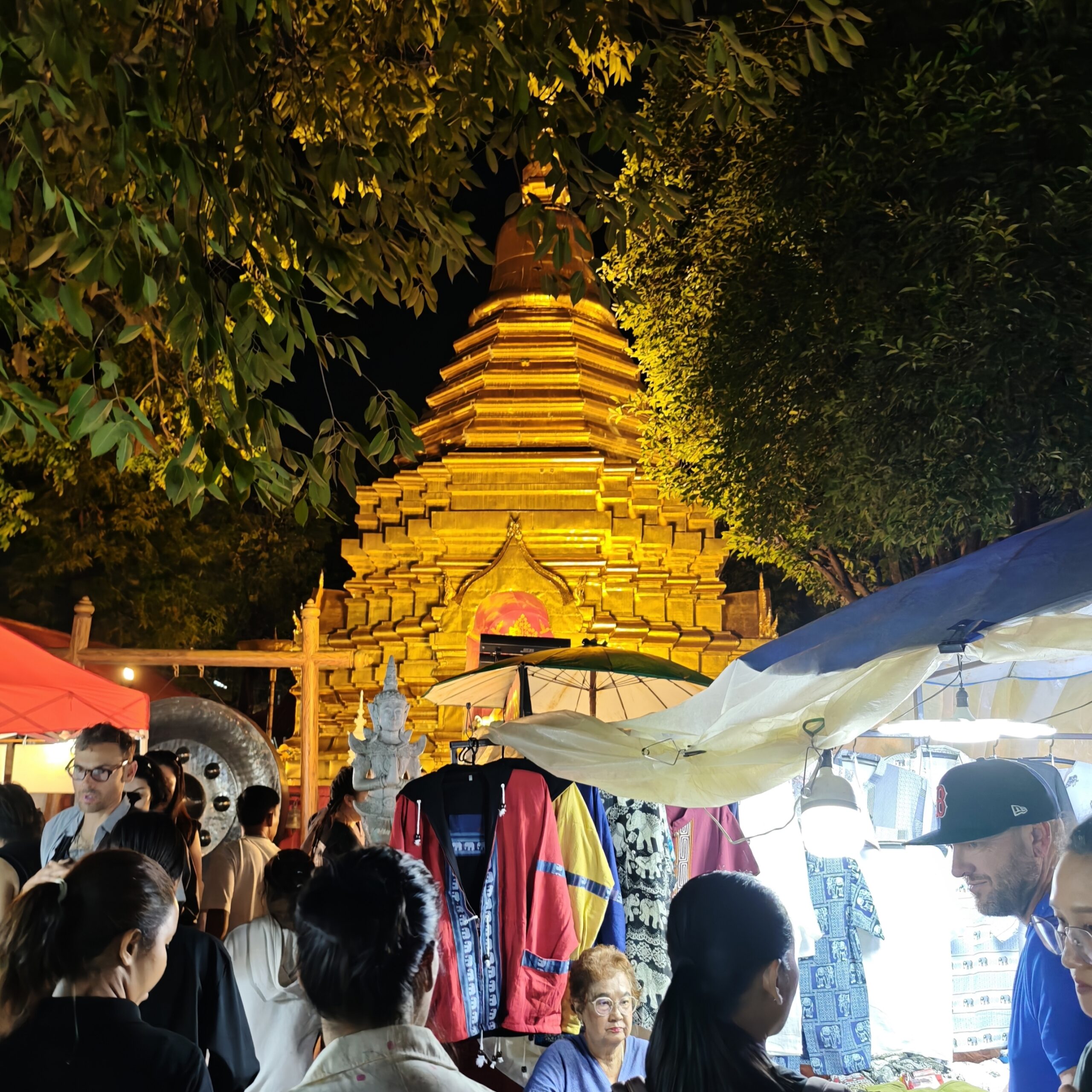 以上、大まかなサンデーナイトマーケットの様子でした。道路は、赤・オレンジ・緑の順に混んでいるので、最短で楽しみたい方は、太平門から三王像広場へ往復するだけでも楽しめます。さらに時短に楽しむなら、ワット・パン・オンへ行って帰るのもありなほど。