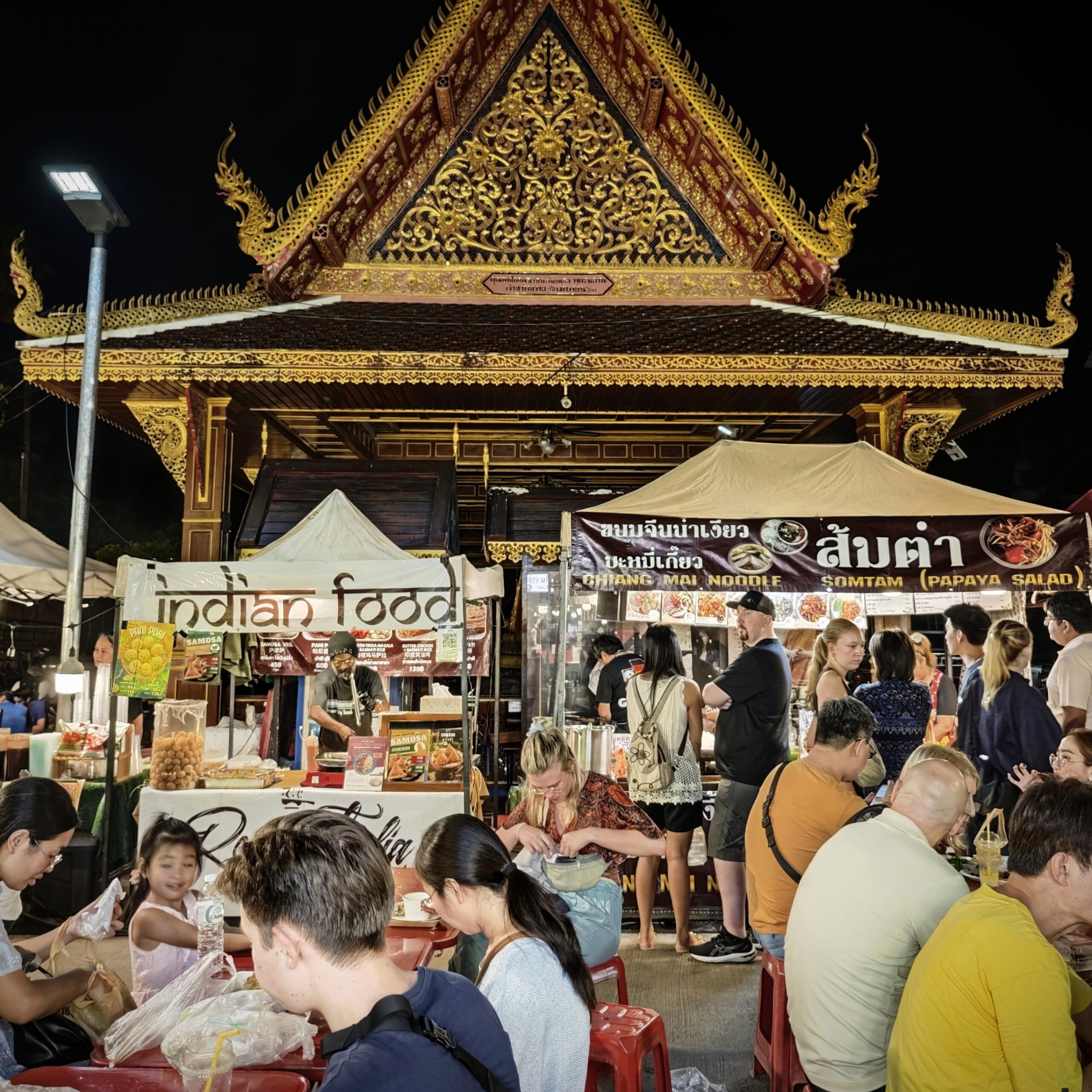 タイのナイトマーケットが初めての方は、マーケットと聞いてもピンとこないかもですが、サンデーナイトマーケットは、もはやお祭りです。想像を超えて大規模なので、日曜日の夜はぜひ太平門に行ってみてください。屋台が旧市街に展開して、地元の方や多くの観光客で賑わう様は圧巻ですよ。