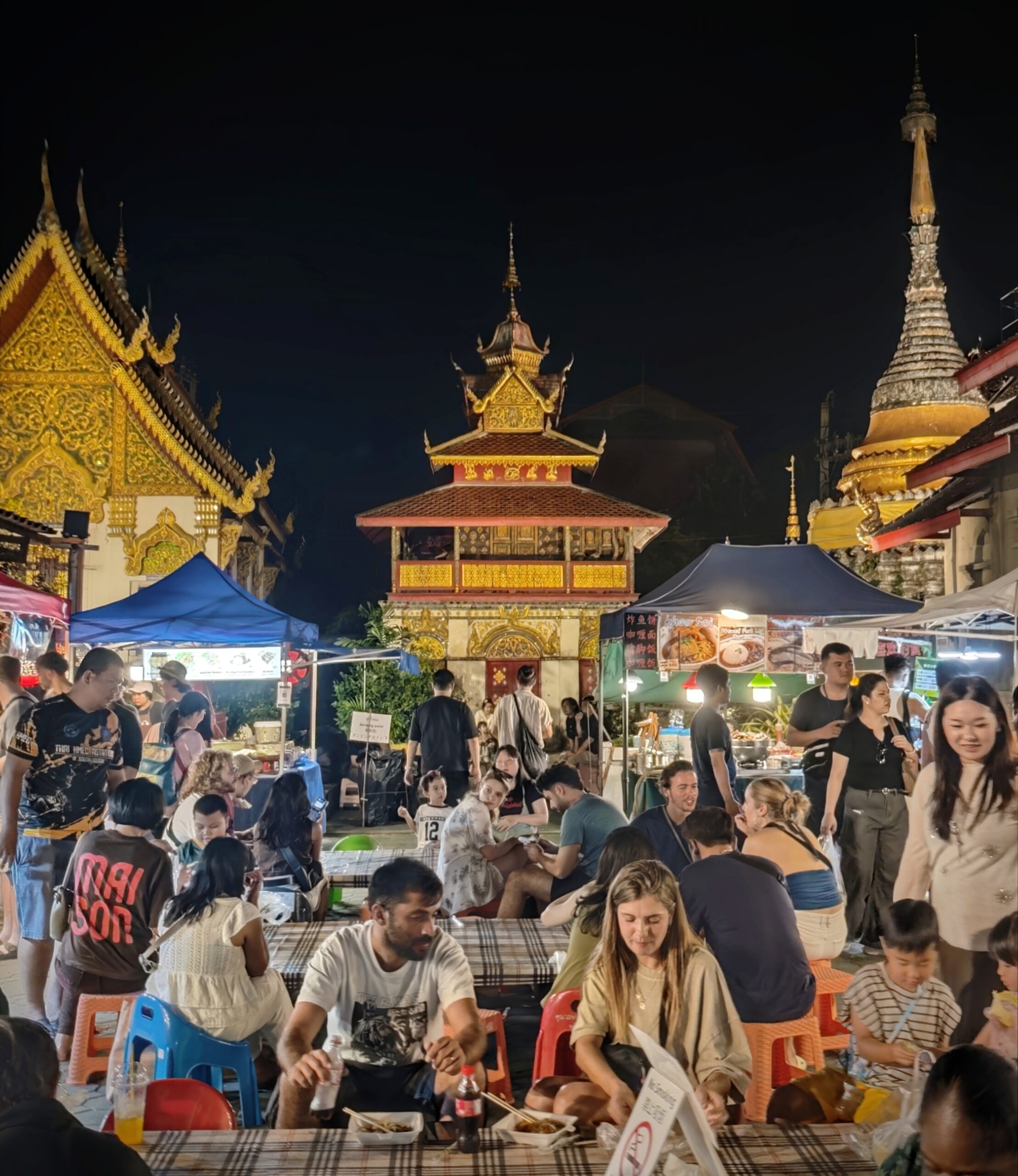 このように、毎週大混雑なサンデーナイトマーケットは、太平門から1キロ先のワット・プラシンまで、1時間かかってしまう程です。