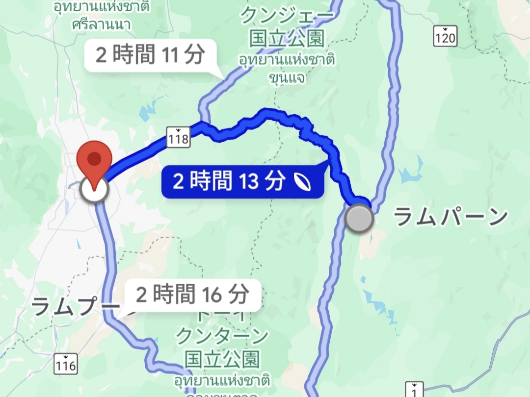 - チェンマイからランパーン経由の場合、バスターミナル1か、アーケードバスターミナル から、ランパーン行きミニバンに乗り(約500円)、ランパーン到着後は、上記参照。