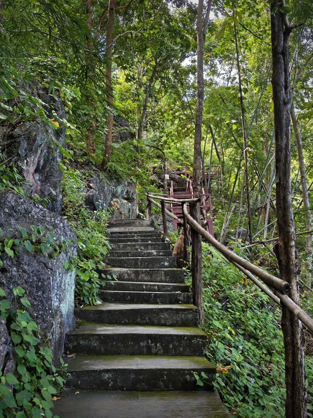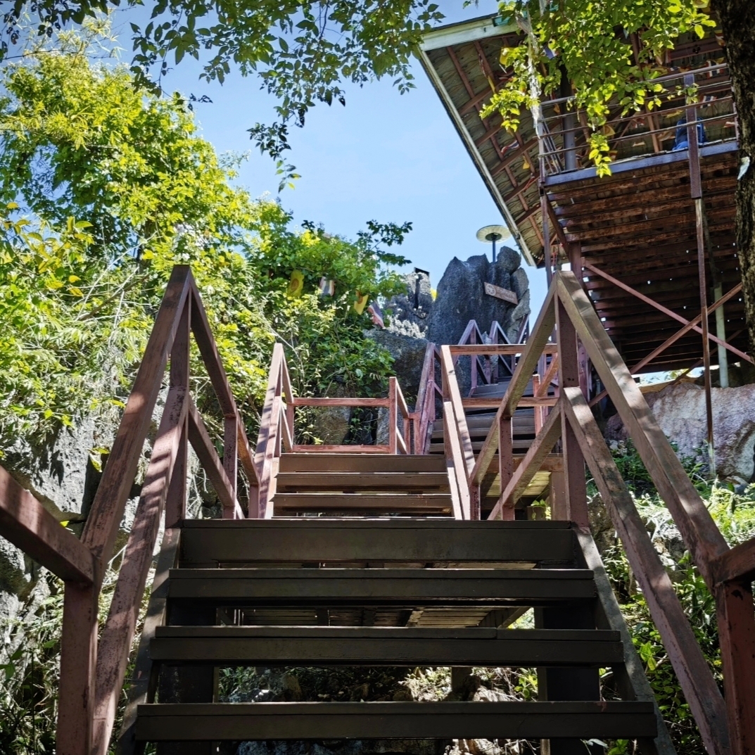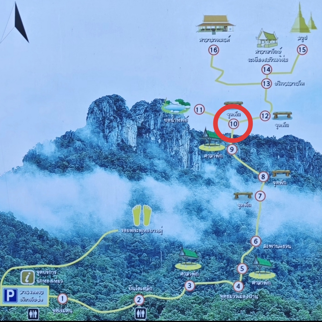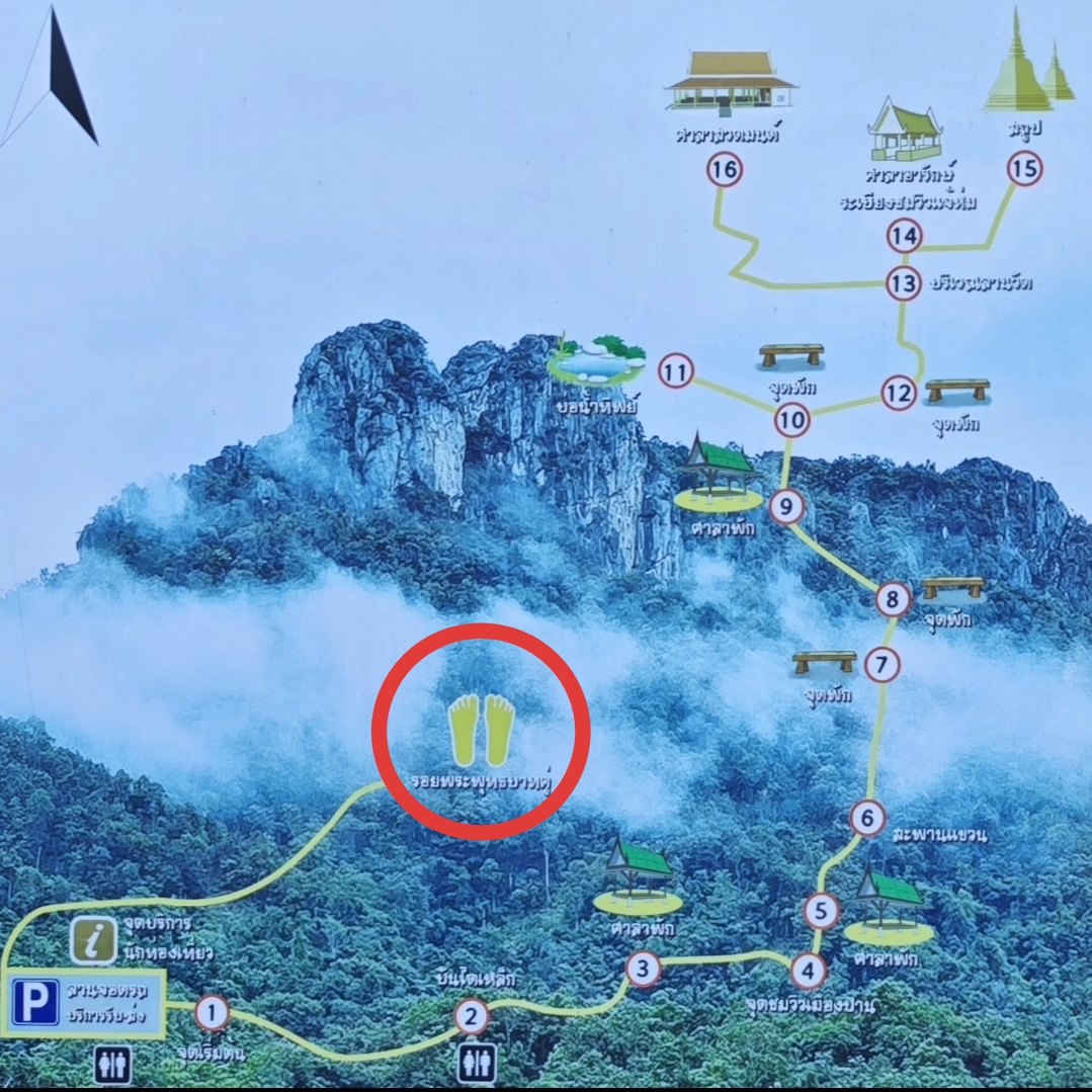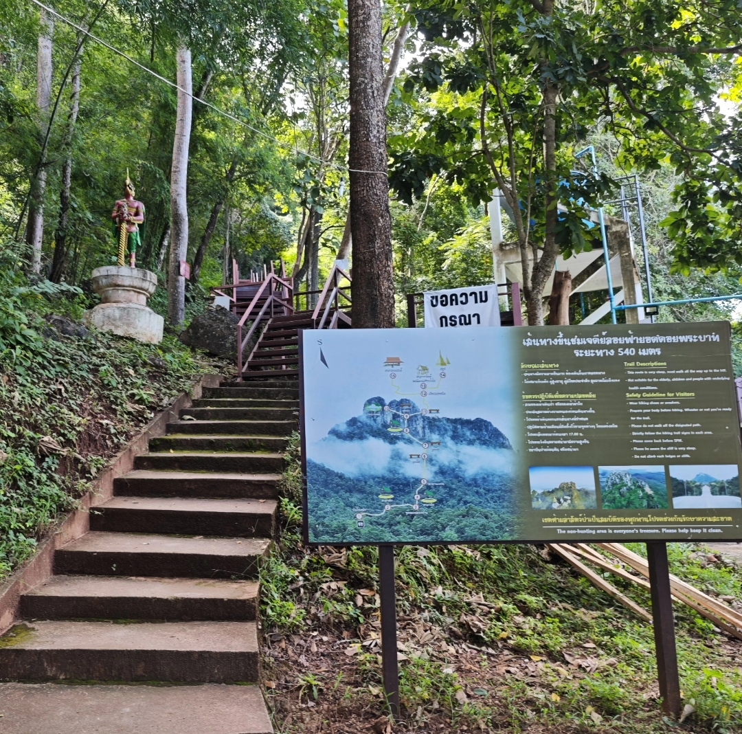 見所としては、タイで一番美しい階段寺院とも言われるほどの「天空の階段」やら「タイのマチュピチュ」とも言われてしまうほどの山頂からのパノラマビューと、釈迦の仏足跡や各所での参拝などです。