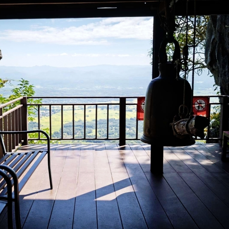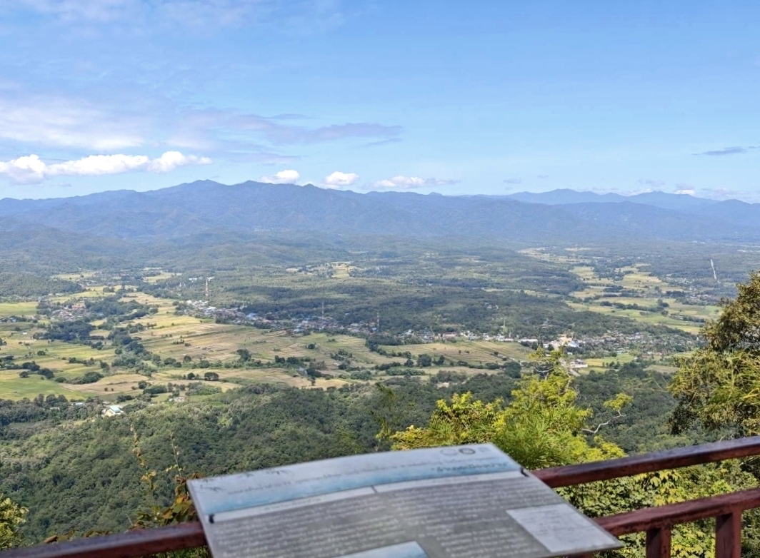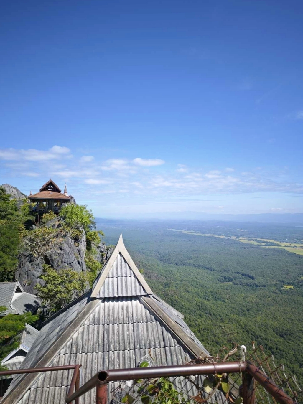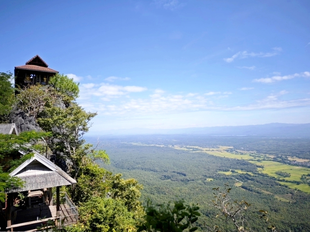 古くからある寺院と思いきやまだ新しく、標高約815mの山頂からは、タイの田舎風景が見渡せます。