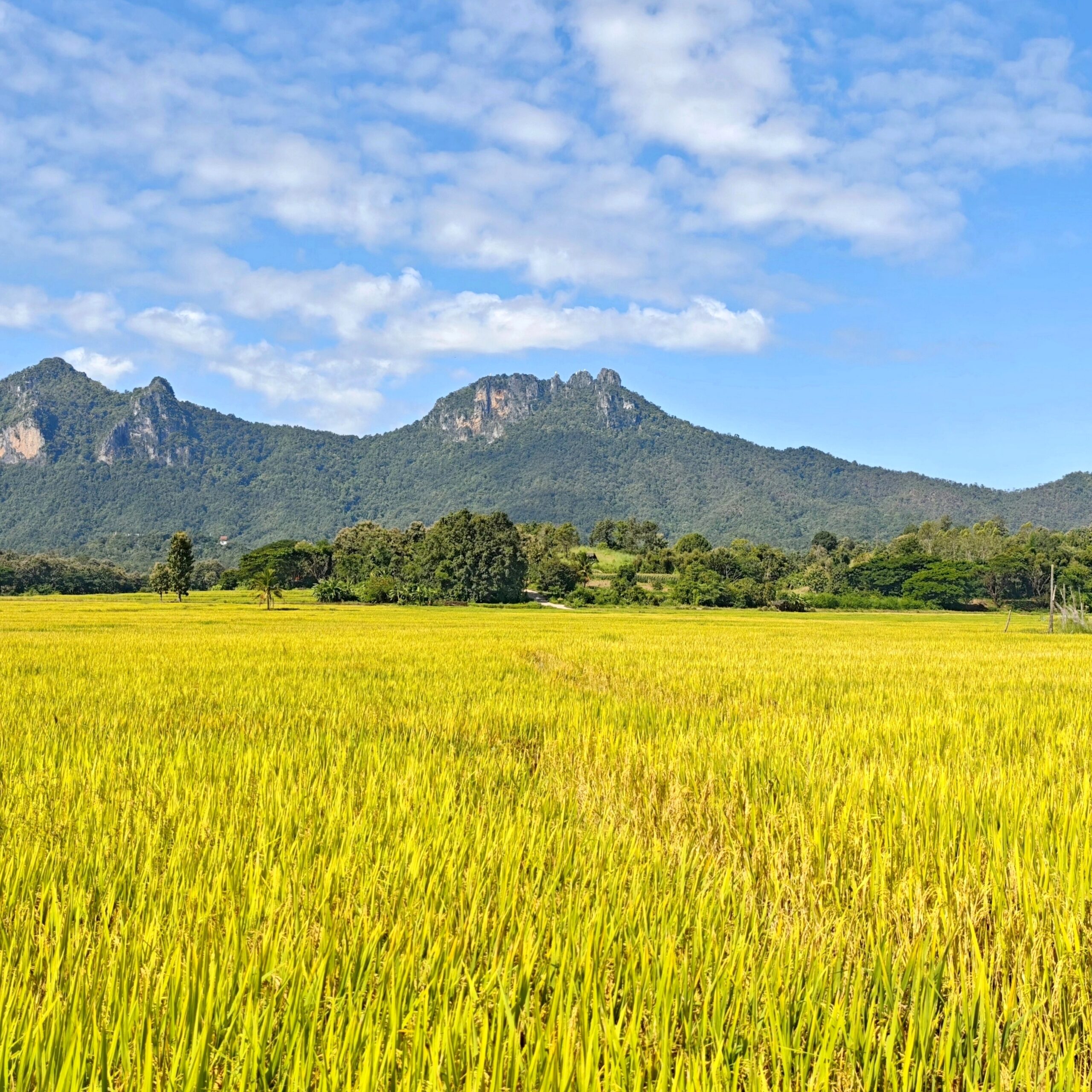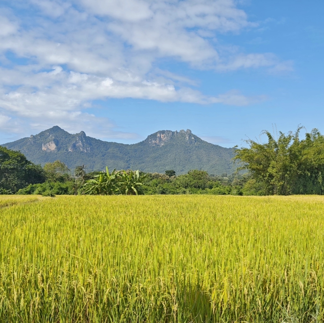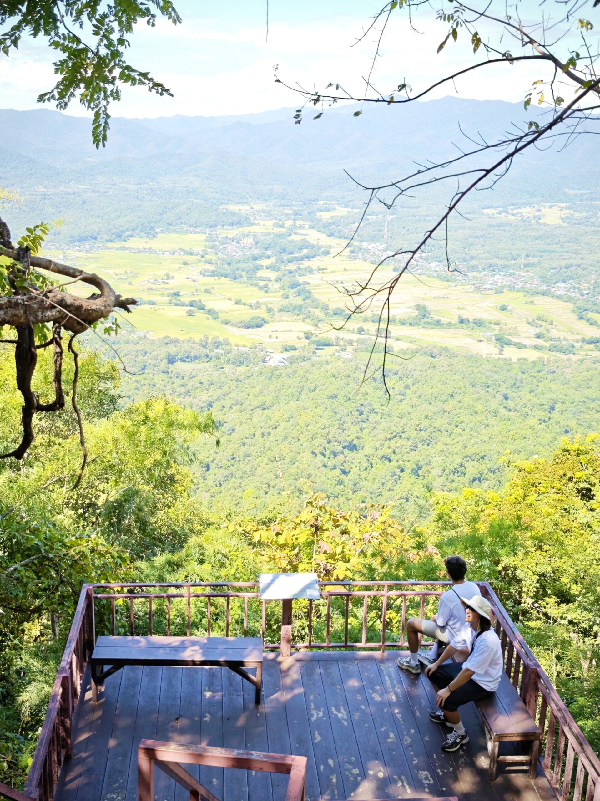 古くからある寺院と思いきやまだ新しく、標高約815mの山頂からは、タイの田舎風景が見渡せます。