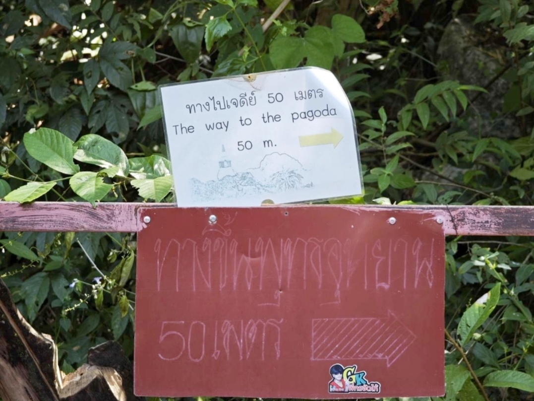 仏塔エリアの50m手前が分岐点になっているので、この看板から右方面へ少し登ると到着です。