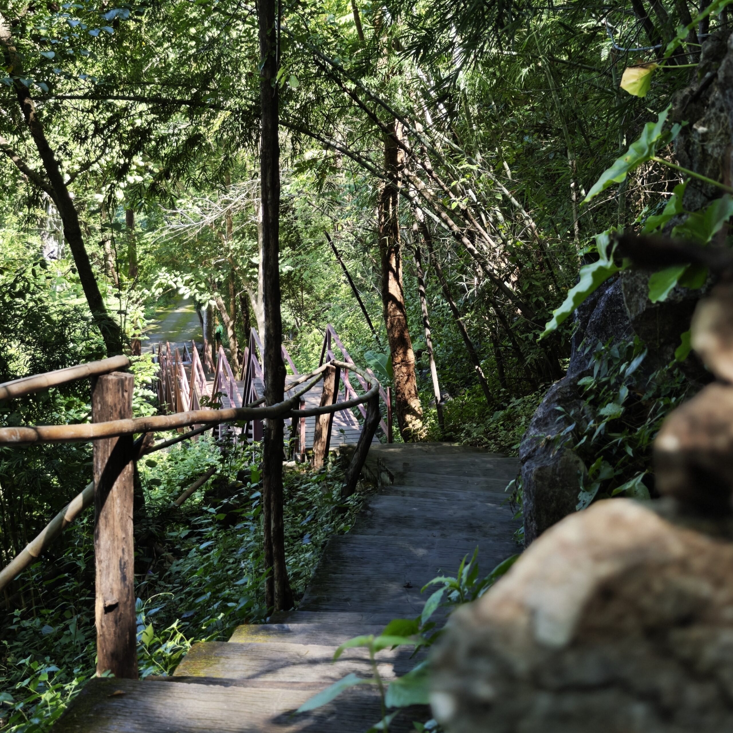 登山口に着くと、そこからは約300mほど平坦な道を歩いて階段に到着し、さらにそこから約1,219段を、約20分ほど登って仏塔エリアへ。