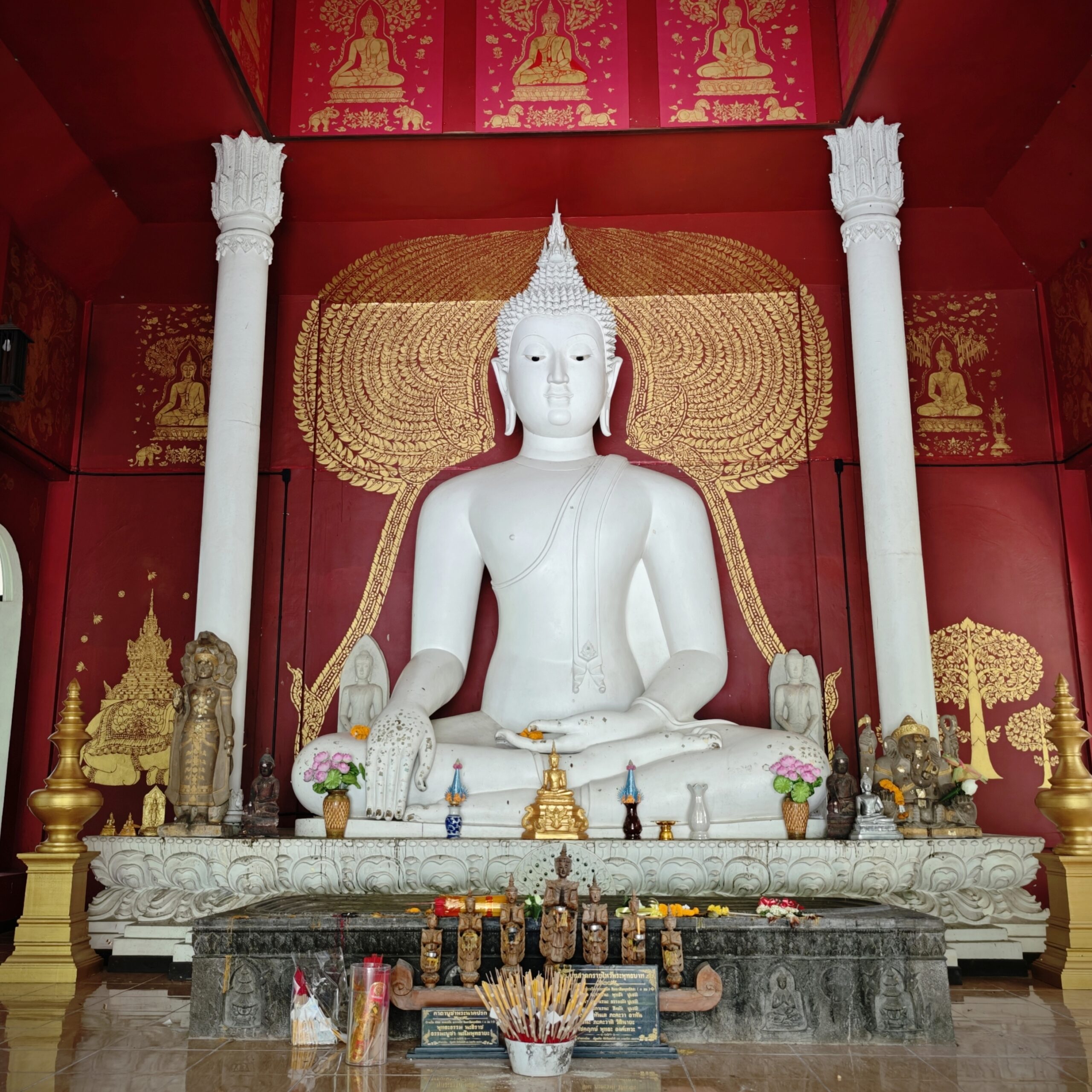 白像伝説は、ランナー王国のアイデンティティでもあり、白象の像が今も寺院に残ります。